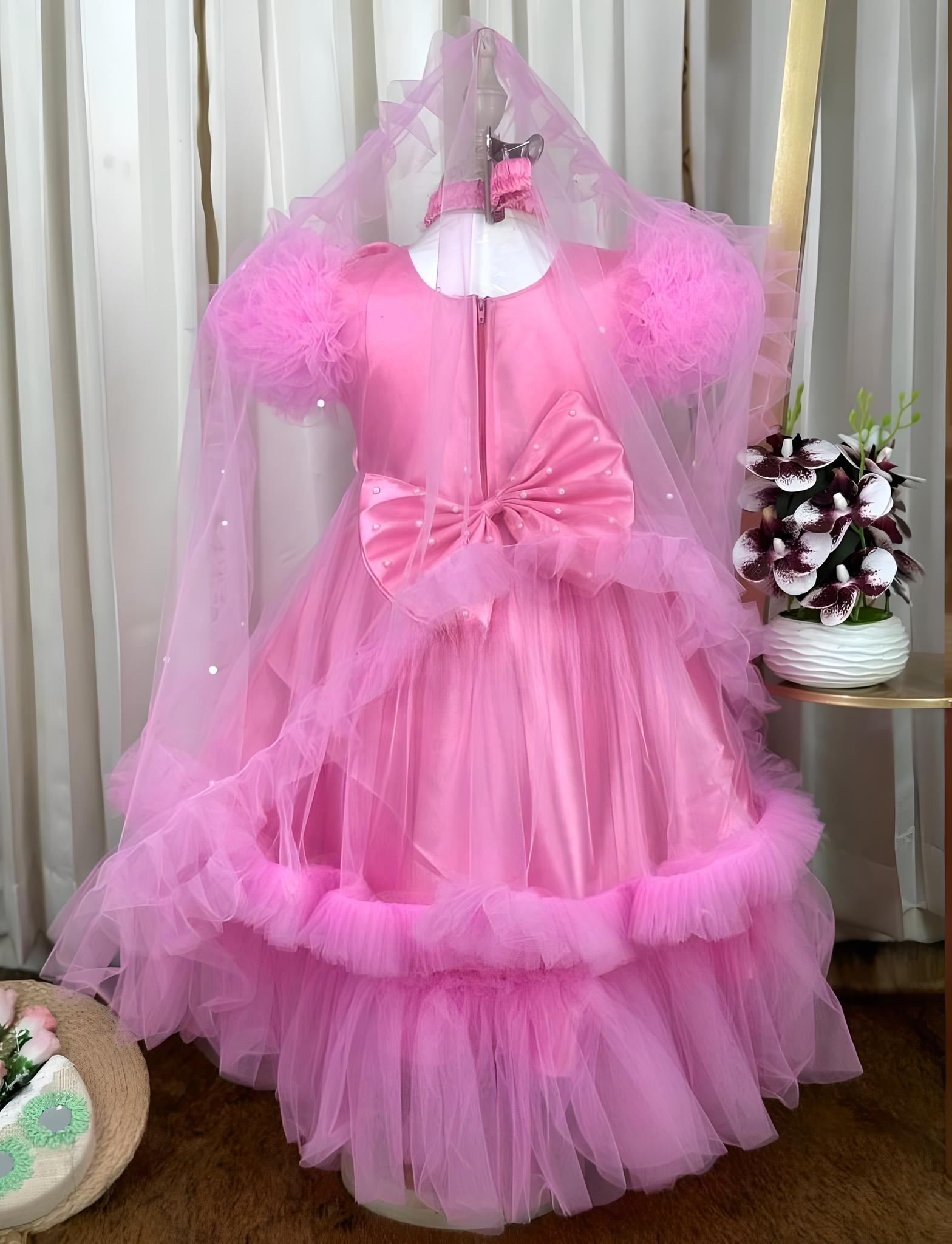 Perfect Baby Gown Pink Rose Design - Ideal For Eid